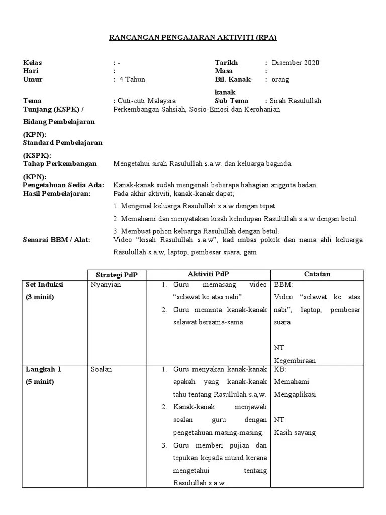 Rpa perkembangan sahsiah sosioemosi dan kerohanian rpa week 3 4 tahun docx rancangan pelaksanaan aktiviti tarikh hari masa umur bilangan kanak kanak tema tajuk .